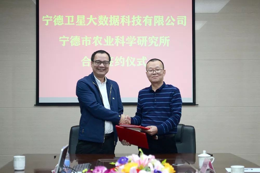 宁德德赢vwin官网大数据公司总司理陈一峰、宁德市农业科学研究所所长陈慕松代表划分代表双方在相助协议文本上签约。。。